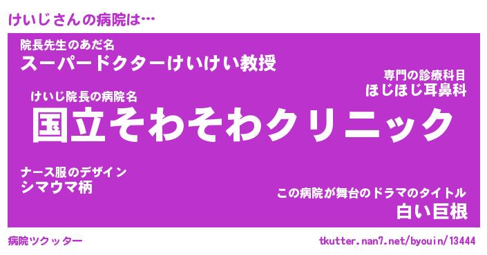 | 意味不明あだ名 | 『ペロリンけいじ』『けいじフォーエバー』 |
