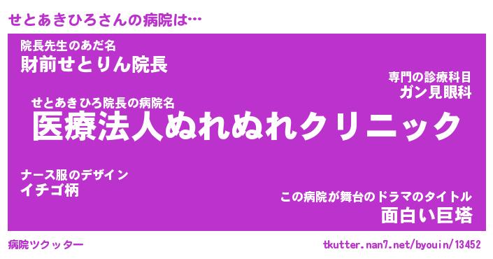 | ヘコむあだ名 | 『せともー』『レバニラ』 |