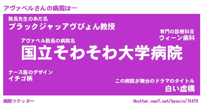 | 男性向けラノベタイトル風あだ名 | 『アヴァベルの憂鬱』 |