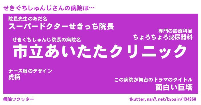| 肩書あだ名 | 『せきぐちしゅんじ御曹司』 |