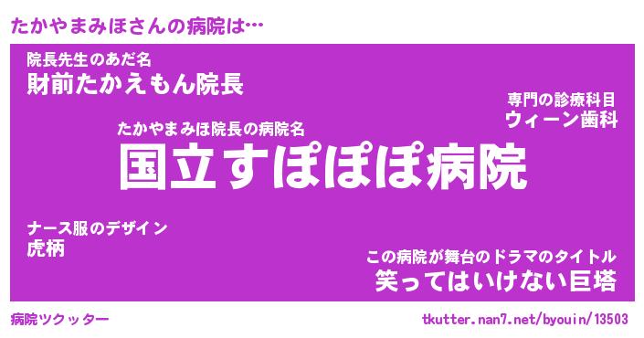 | 伝説のあだ名 | 『伝説のスナイパーたかやまみほ』 |