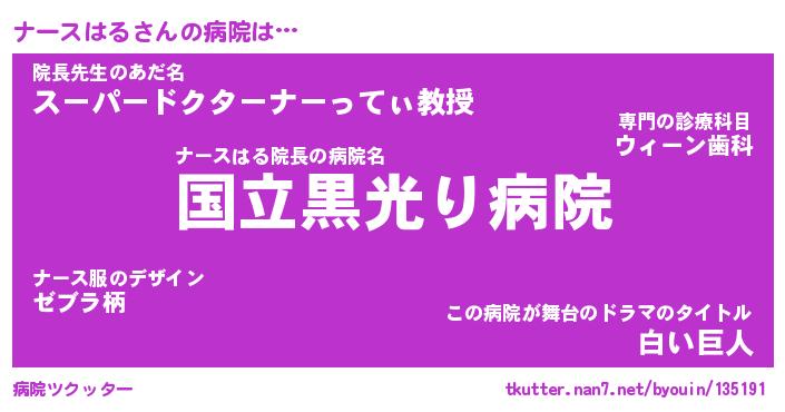 | 男性向けラノベタイトル風あだ名 | 『ナースはるの憂鬱』 |