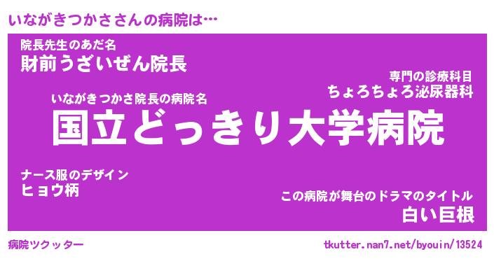 | 男性向けラノベタイトル風あだ名 | 『いながきつかさの憂鬱』 |