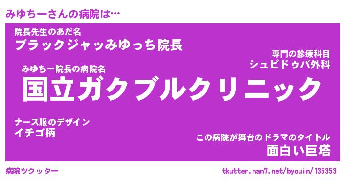 | ファンタジー風あだ名 | 『ミユフェル』『エターナルミユチーー』 |