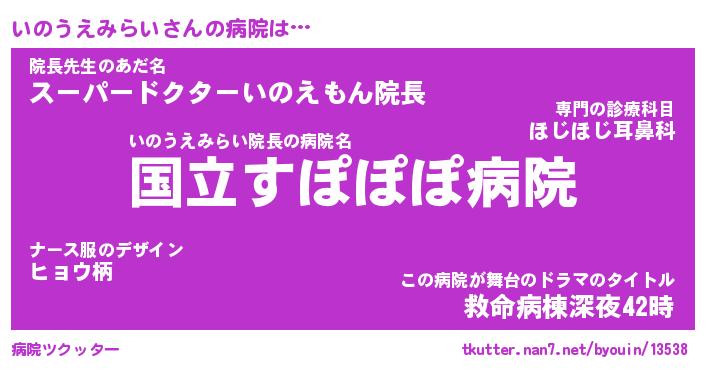 | ポケモン風あだ名 | 『イノチュウ』『イノウダネ』 |