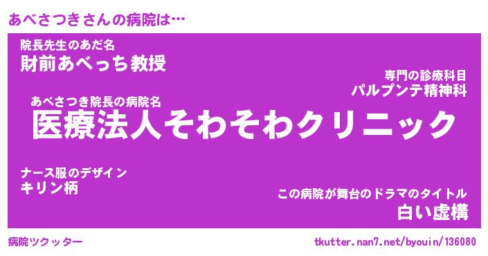 | 胡散臭い通販商品みたいなあだ名 | 『億万長者になれるブレスレット…その名も「あべさつき」』 |