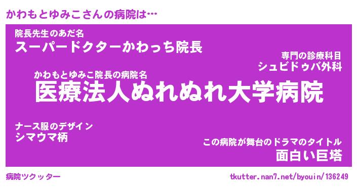 | 肩書あだ名 | 『かわもとゆみこ社長令嬢』 |