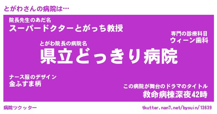 | ヒーロー風カッコイイあだ名 | 『スーパートガワ』『ウルトラとがわマン』 |