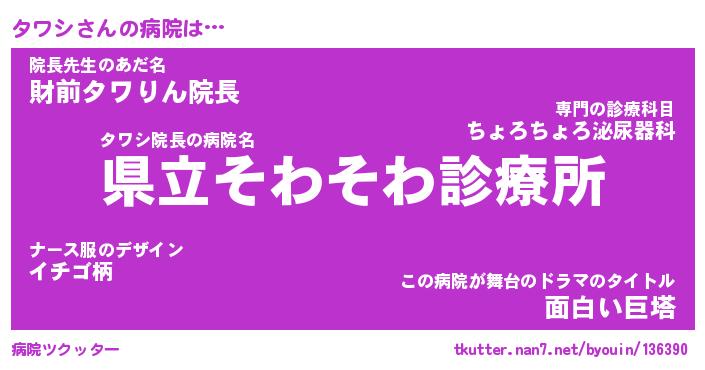 | ファンタジー風あだ名 | 『タワフェル』『エターナルタワシー』 |