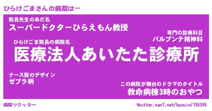 | 自動車の名前っぽいあだ名 | 『ヒラティマ』『ヒクア』『ヒント』 |