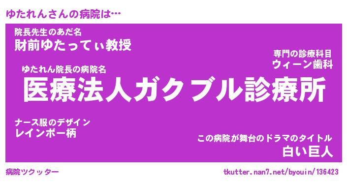 | 意味不明あだ名 | 『ペロリンゆたれん』『永久保存ゆたれん』 |