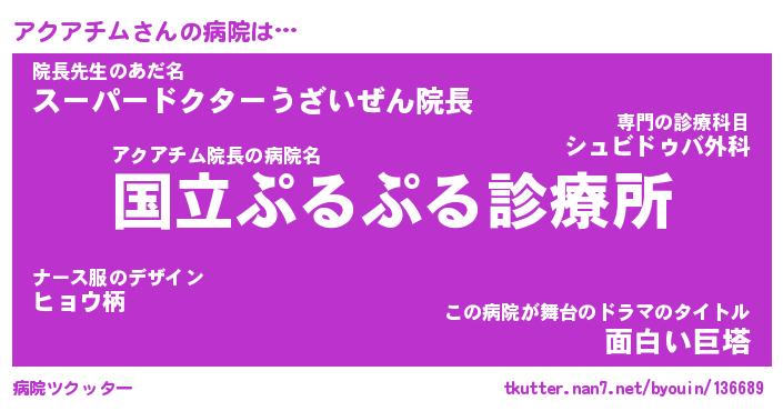 | ポケモン風あだ名 | 『アクチュウ』『アクアダネ』 |