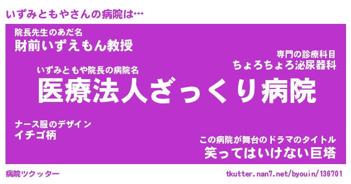 | ヒーロー風カッコイイあだ名 | 『スーパーイズミトモヤ』『幻影騎士イズ』 |