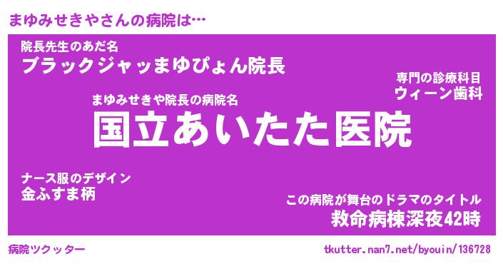 | 伝説のあだ名 | 『伝説のスナイパーまゆみせきや』 |
