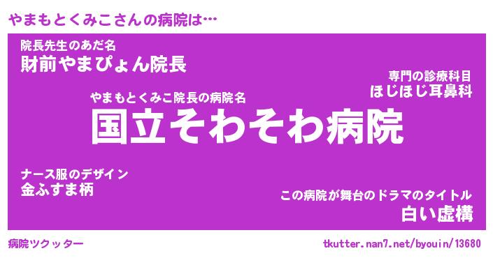 | ツイッター | やまもとくみこさんのツイッターID『renkon_star』 |