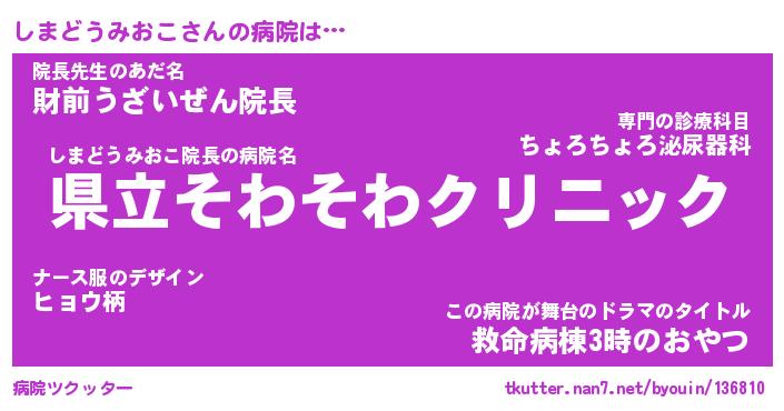 | 胡散臭い通販商品みたいなあだ名 | 『モテモテ間違いなし水晶球…その名も「しまどうみおこ」』 |