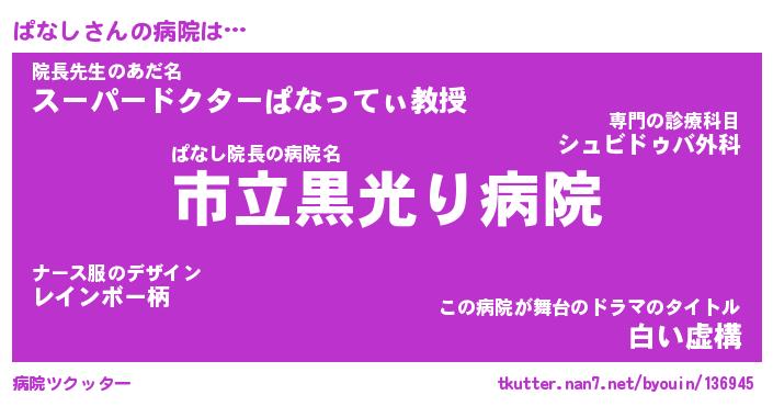 | ヒーロー風カッコイイあだ名 | 『スーパーパナシ』『ウルトラぱなしマン』 |