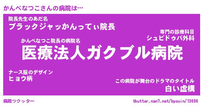 | 胡散臭い通販商品みたいなあだ名 | 『億万長者になれる水晶球…その名も「かんべなつこ」』 |