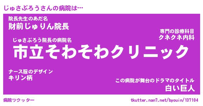 | 男性向けラノベタイトル風あだ名 | 『じゅさぶろうの憂鬱』 |