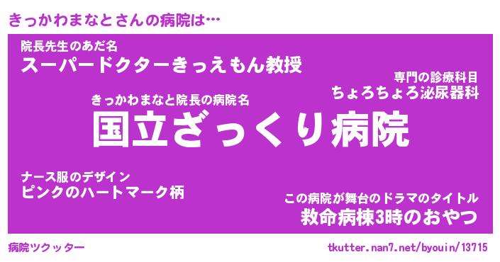 | 伝説のあだ名 | 『伝説のスナイパーきっかわまなと』 |