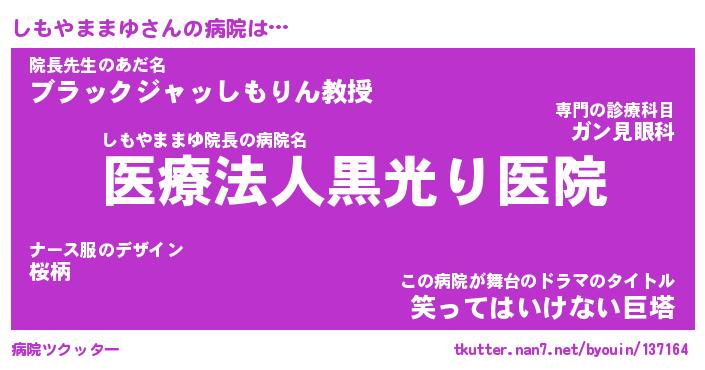 | ヘコむあだ名 | 『しもにー』『なまこ酢』『しも太郎』 |
