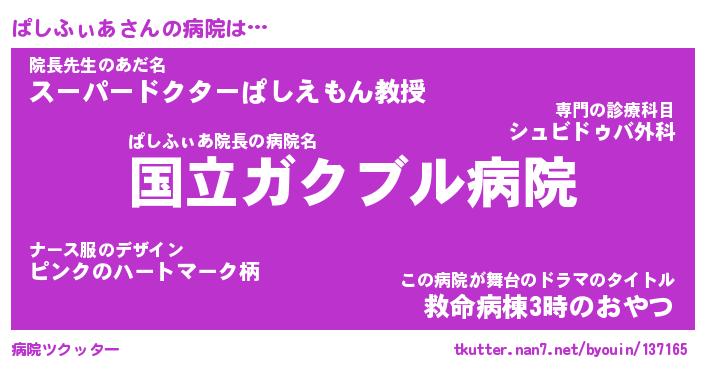 | ヘコむあだ名 | 『ぱしにゅー』『つくし』『ぱしっ子』 |