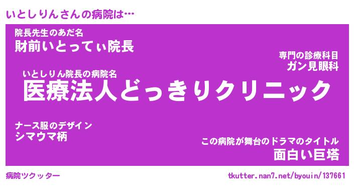 | ファンタジー風あだ名 | 『イトフェル』『エターナルイトシリンー』 |