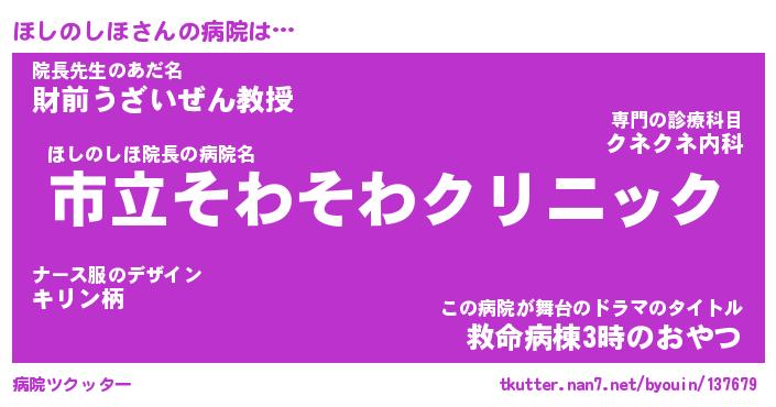 | ヘコむあだ名 | 『ほしふぇ~』『つくし』『ほし太郎』 |