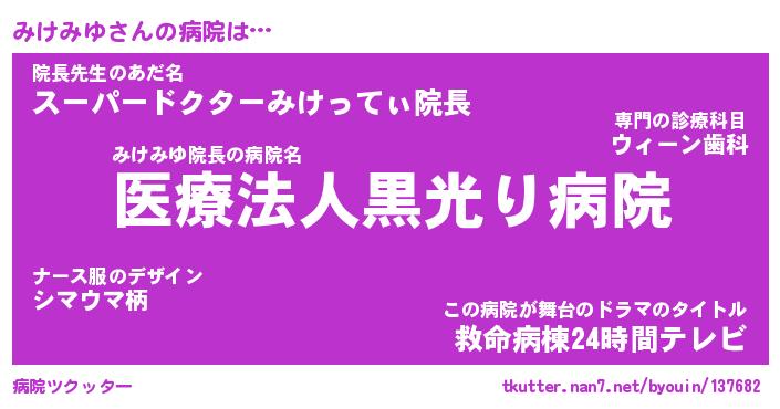 | 欧米人風あだ名 | 『マイケルみけみゆ』『ウサインみけみゆ』 |