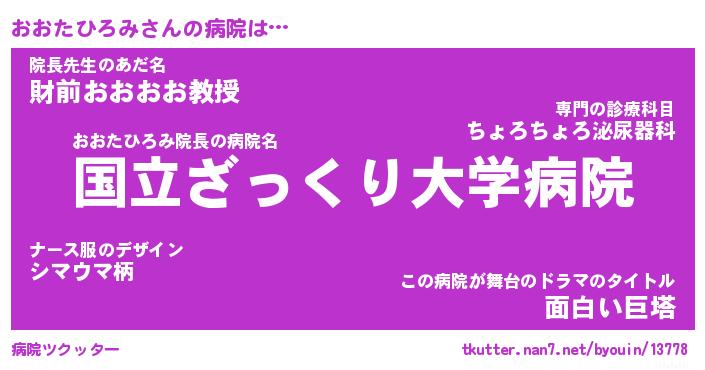 | 女子向けラノベタイトル風あだ名 | 『(仮)おおたひろみのやんごとなき事情』 |