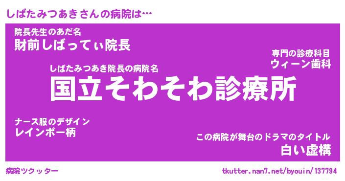 | ヒーロー風カッコイイあだ名 | 『スーパーシバタミツアキ』 |