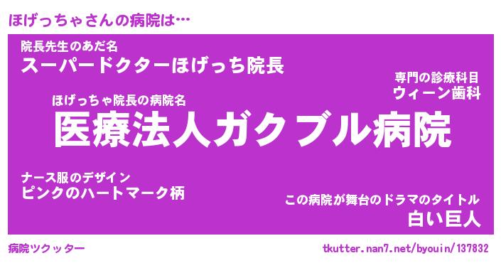 | ファンタジー風あだ名 | 『ホゲフェル』『エターナルホゲッチャー』 |