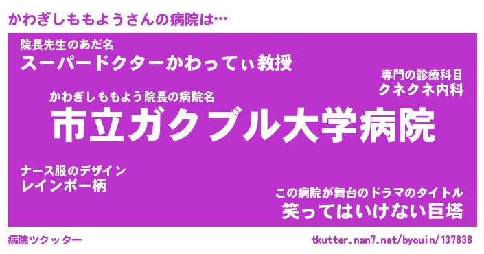 | 肩書あだ名 | 『かわぎしももよう店長』 |