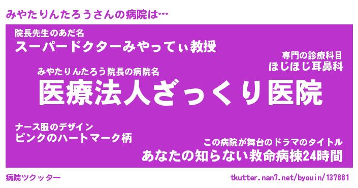 | 欧米人風あだ名 | 『マイケルみやたりんたろう』 |