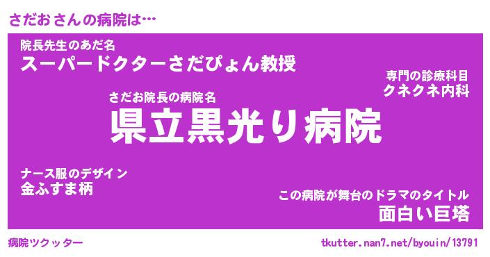 | 女子向けラノベタイトル風あだ名 | 『さだお姫と円卓の騎士』 |