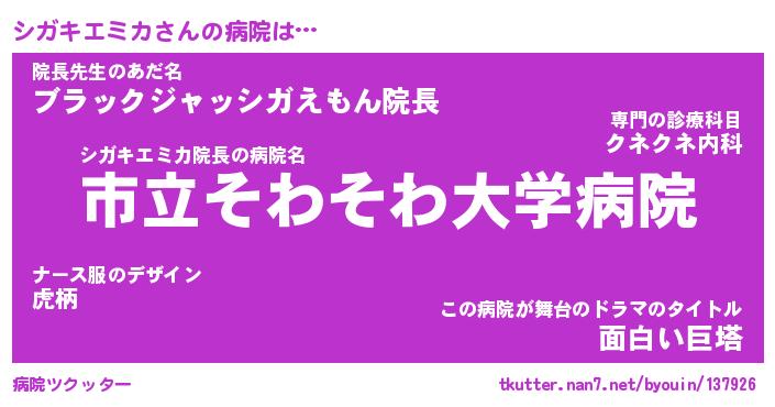 | 肩書あだ名 | 『シガキエミカCEO』『シガキエミカ大統領』 |