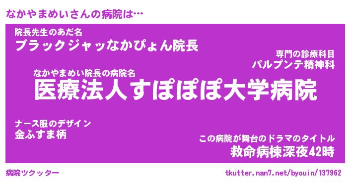 | ポケモン風あだ名 | 『ナカチュウ』『ナカヤダネ』 |