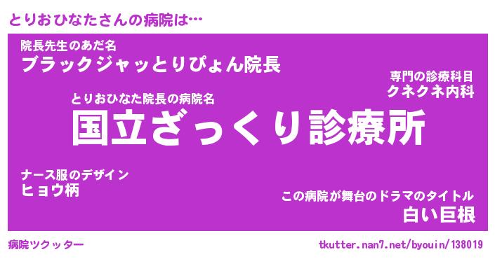 | 2回繰り返すあだ名 | 『とりとり』『ととりり』『おたおた』 |