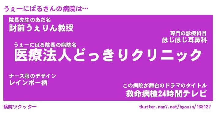 | ヒーロー風カッコイイあだ名 | 『スーパーウェーニバル』『天弓騎士ウェ』 |