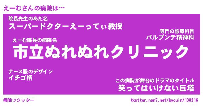 | 2回繰り返すあだ名 | 『えーえー』『ええーー』『ぬれぬれ』 |
