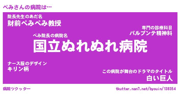 | 2回繰り返すあだ名 | 『ぺみぺみ』『ぺぺみみ』『ぬれぬれ』 |