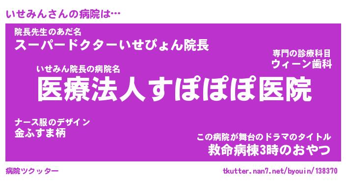 | ファンタジー風あだ名 | 『イセフェル』『エターナルイセミンー』 |