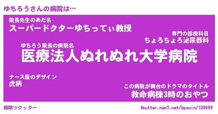 | 意味不明あだ名 | 『ペロリンゆちろう』『永久保存ゆちろう』 |