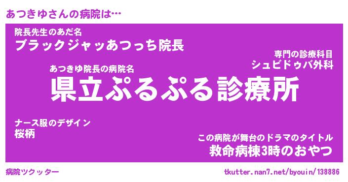 | 意味不明あだ名 | 『ペロリンあつきゆ』『永久保存あつきゆ』 |