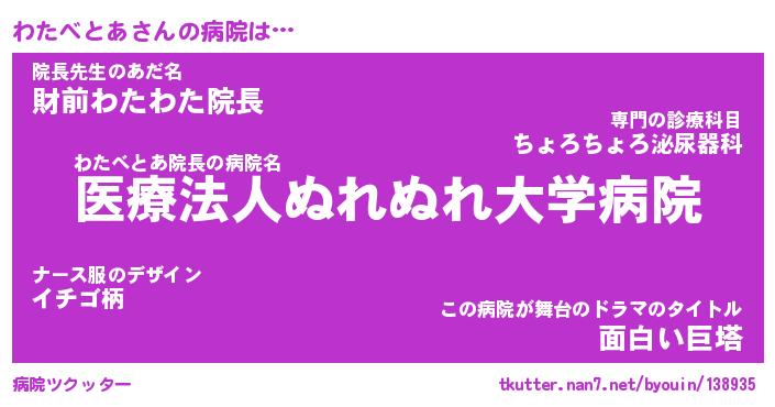 | 2回繰り返すあだ名 | 『わたわた』『わわたた』『ぬめぬめ』 |
