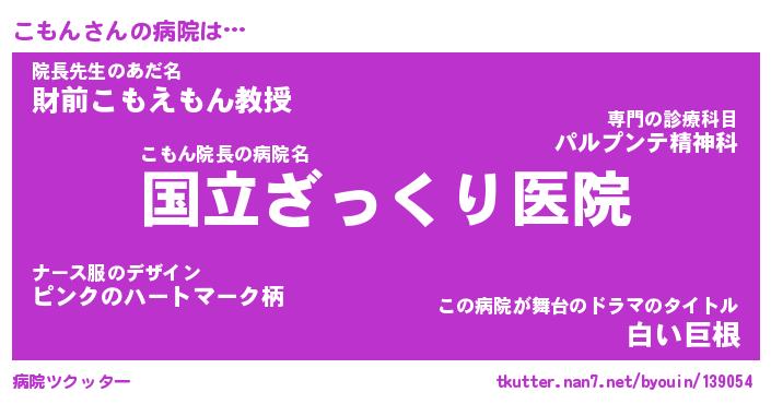 | 2回繰り返すあだ名 | 『こもこも』『ここもも』『ふかふか』 |