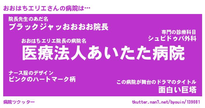 | 肩書あだ名 | 『おおはちエリエ御曹司』 |