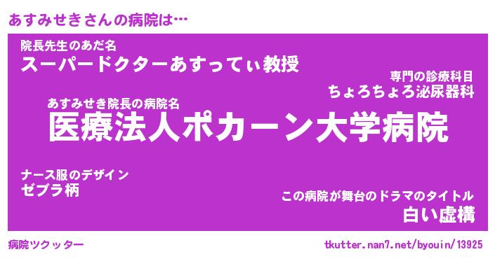 | ヘコむあだ名 | 『あすにゅー』『牛乳』『あすお』 |