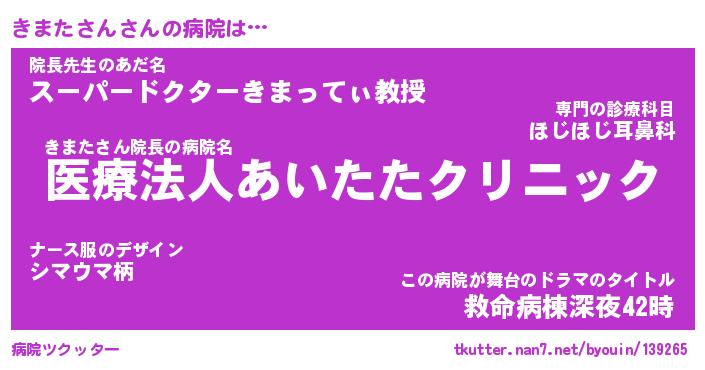 | ヒーロー風カッコイイあだ名 | 『スーパーキマタサン』『天弓騎士キマ』 |