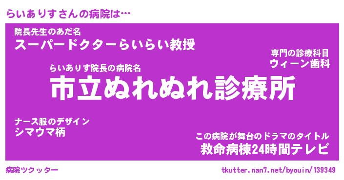 | 先生 | らいありす先生が勤める学校名『県立ささくれ中学校』 |